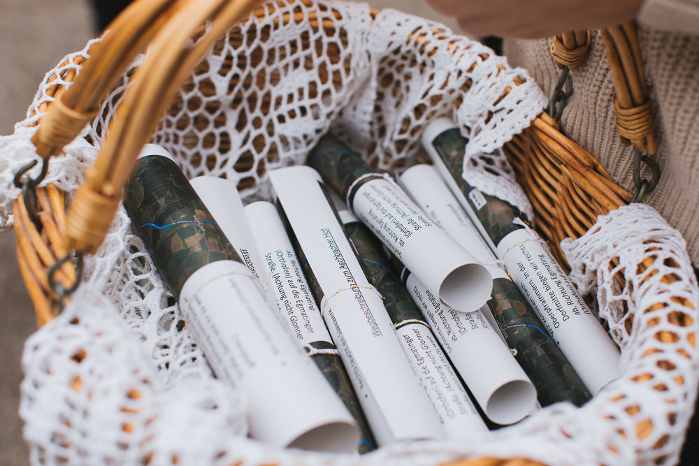 Die beiden heirateten kirchlich inmitten von München und feierten ihre Hochzeit im Aschbacher Hof. Wer den Aschbacher Hof kennt….das ist jetzt nicht gerade 2x um die Ecke innerhalb Münchens. Man muss folglich über die A8 in Richtung Salzburg. Und wer die A8 kennt, weiß… dies kann zu gewissen Zeiten und Tagen sehr heikel werden, grade unter Zeitdruck. Habt daher bei längeren Autofahrten zwischen Locationwechseln immer einen Plan A, wie ihr alle Gäste und auch eure Dienstleister dort hinführt. Und mein Rat für euch: Auch einen Plan B! Warum erzähle ich das euch? Zu dieser Zeit im letzten Oktober gab es unheimlich viele Baustellen (gut, die gibt es auch sonst) und insbesondere auch Straßensperrungen. Isabella & Thomas hatten für all ihre Gäste einen Fahrplan gedruckt und diesen zur Trauung verteilt. Dieser Fahrplan beinhaltete eine Route fern ab der Autobahn. Problem? Eine Straßensperrung, die leider auch in Google nicht registriert war. Dies fiel den beiden jedoch nur auf, da sie am Tag vor ihrer Hochzeit im Aschbacher Hof den Weg nochmal abgefahren sind. Kurzerhand wurde der Plan umgeworfen, neu geschrieben, neu gedruckt und alle Gäste (einschließlich mir) haben den Weg zum Aschbacher Hof problemlos ohne Stau und Straßensperrungen gefunden.