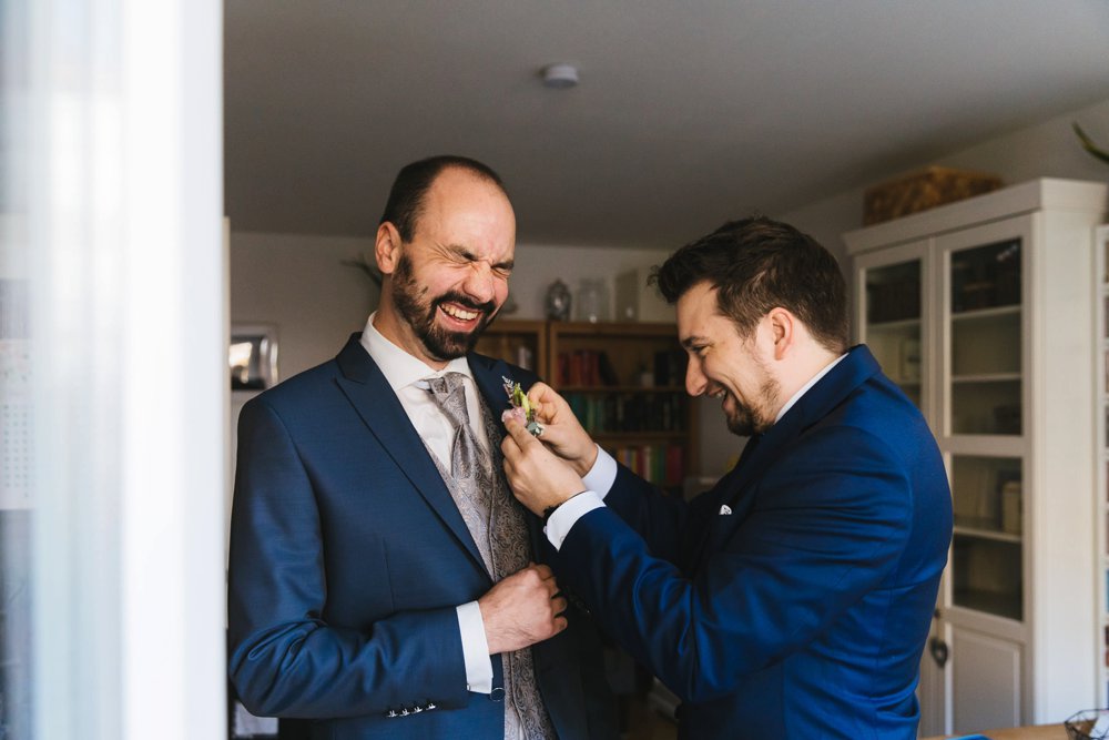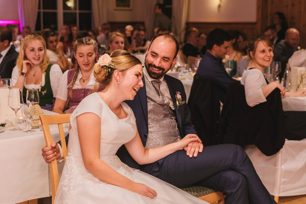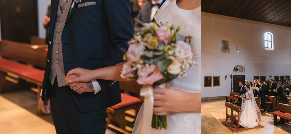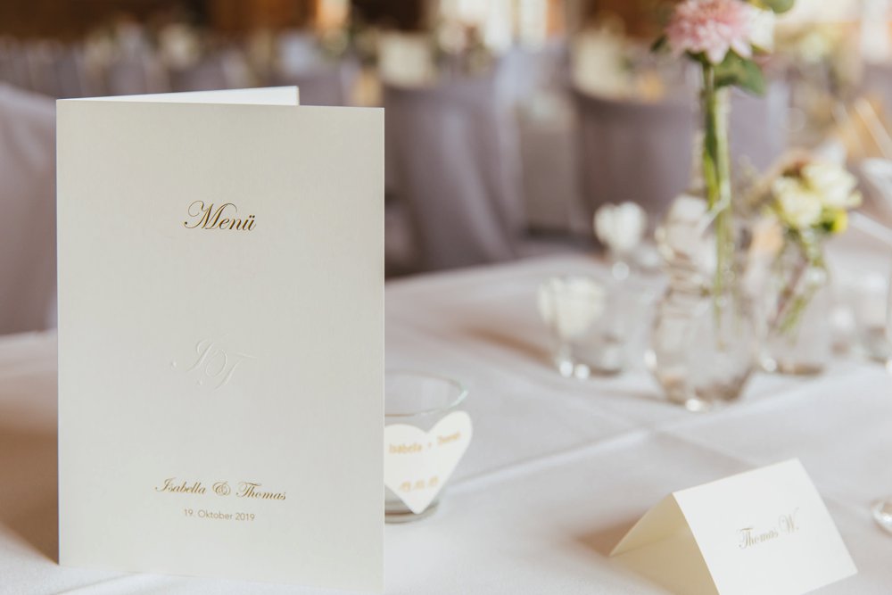 Die beiden heirateten kirchlich inmitten von München und feierten ihre Hochzeit im Aschbacher Hof. Wer den Aschbacher Hof kennt….das ist jetzt nicht gerade 2x um die Ecke innerhalb Münchens. Man muss folglich über die A8 in Richtung Salzburg. Und wer die A8 kennt, weiß… dies kann zu gewissen Zeiten und Tagen sehr heikel werden, grade unter Zeitdruck. Habt daher bei längeren Autofahrten zwischen Locationwechseln immer einen Plan A, wie ihr alle Gäste und auch eure Dienstleister dort hinführt. Und mein Rat für euch: Auch einen Plan B! Warum erzähle ich das euch? Zu dieser Zeit im letzten Oktober gab es unheimlich viele Baustellen (gut, die gibt es auch sonst) und insbesondere auch Straßensperrungen. Isabella & Thomas hatten für all ihre Gäste einen Fahrplan gedruckt und diesen zur Trauung verteilt. Dieser Fahrplan beinhaltete eine Route fern ab der Autobahn. Problem? Eine Straßensperrung, die leider auch in Google nicht registriert war. Dies fiel den beiden jedoch nur auf, da sie am Tag vor ihrer Hochzeit im Aschbacher Hof den Weg nochmal abgefahren sind. Kurzerhand wurde der Plan umgeworfen, neu geschrieben, neu gedruckt und alle Gäste (einschließlich mir) haben den Weg zum Aschbacher Hof problemlos ohne Stau und Straßensperrungen gefunden.