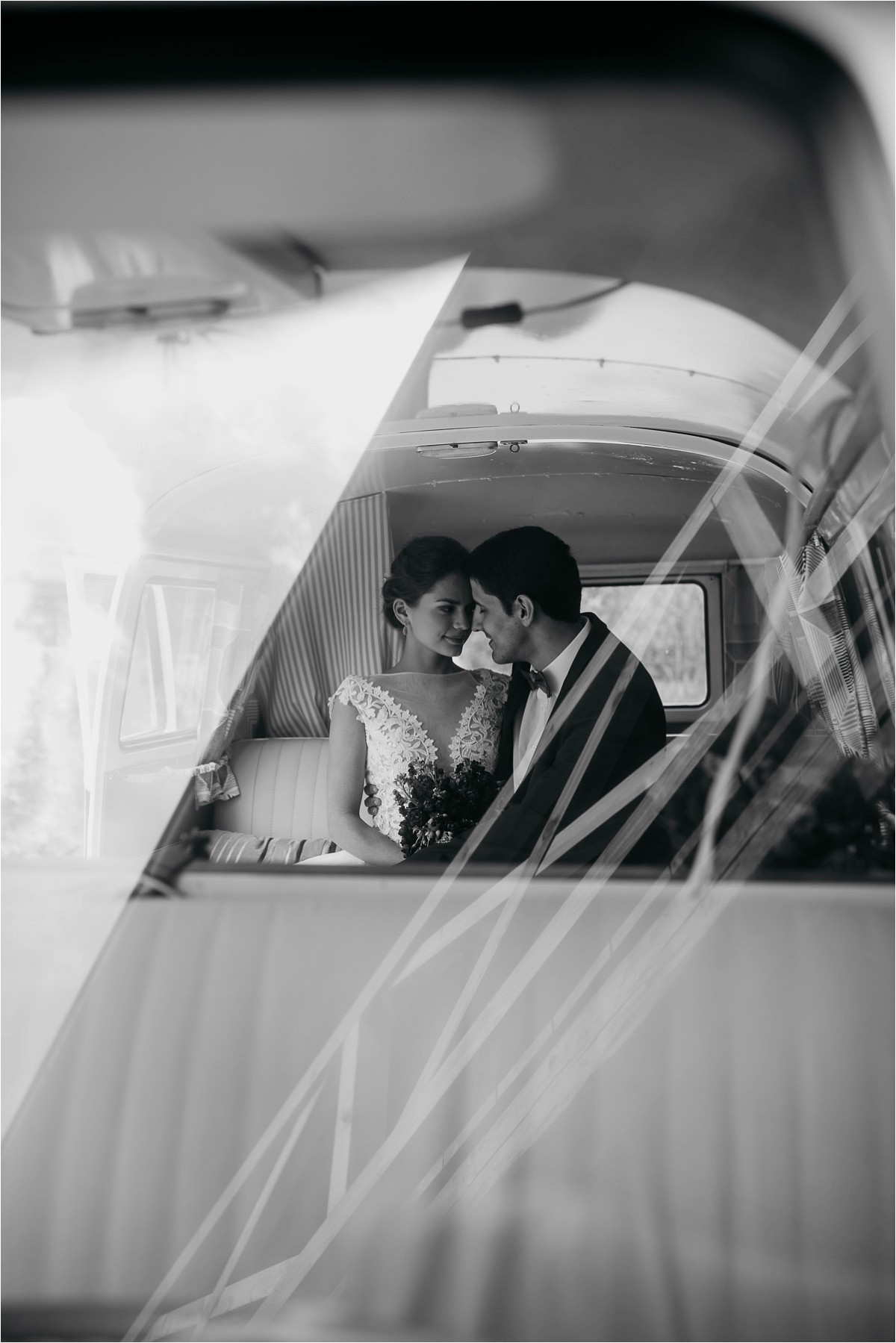 Bräutigam schaut ins Brautauto