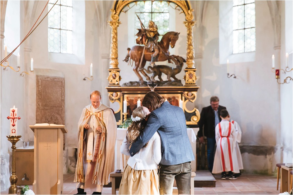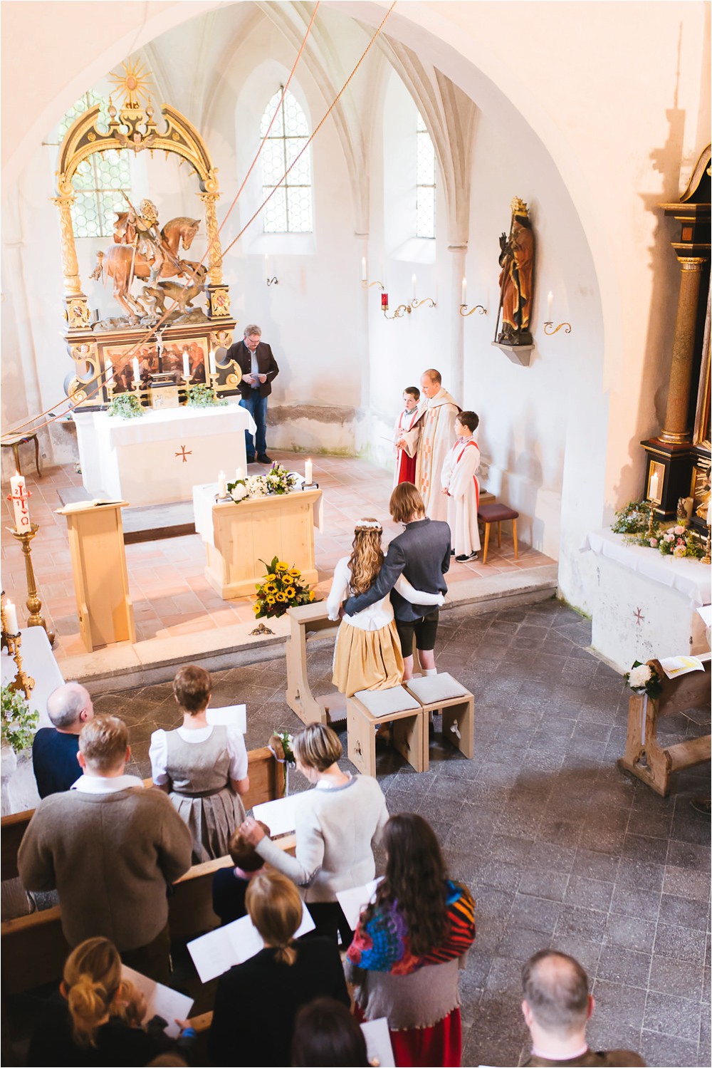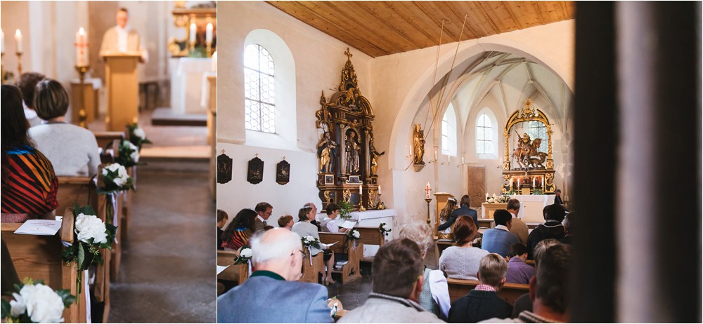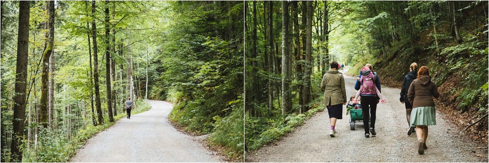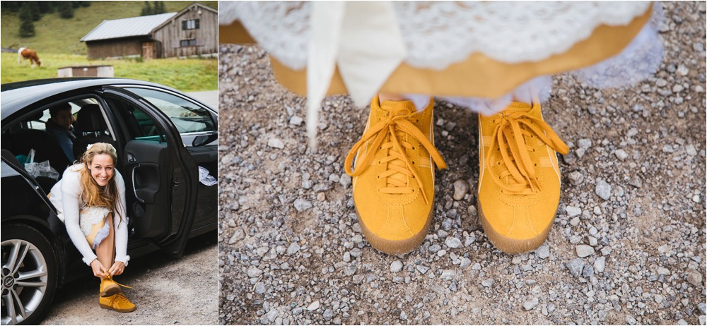 Schliersee, Spitzingsattel, Alm, Berge & Kuhglocken. Ein Traum! Der Tag begann für mich, als Hochzeitsfotografin Schliersee mit einer Shuttlefahrt auf die Obere Firstalm. Dort angekommen, bezog ich mein Zimmer und war überwältigt von der schönen Landschaft um die Firstalm. Kurz nach den ersten Loctionfotos ging’s für mich, als auch die Gäste & Michi direkt zum Shuttlebus, der uns zur Kapelle nach Schliersee fuhr. Die kirchliche Trauung fand in der Kapelle St. Georg am Weinberg über dem Schliersee statt. Eine süße kleine Kirche. Viel Platz hat man dort wahrlich nicht, aber für die familiäre & romantische Hochzeit von Michi & Corinna war die Kapelle perfekt. Nach der Trauung hatten Corinna & Michi für den Sektempfang einen Bollerwagen organisiert und eine kleine Wanderung auf die Obere Firstalm geplant. Der Bollerwagen war gefüllt mit Obst, Süßigkeiten für die Kleinen, Getränken aller Art und „Deftigem“ als Wegzehrung für die Wanderung. Wir machten zwischenzeitlich immer wieder Pause. Während der Wanderung begegneten uns noch Musiker, die meinem Brautpaar spontan ein Ständchen hielten. Nach etwa einer Stunde erreichten wir die Obere Firstalm bei leider nicht mehr ganz so schönem Wetter wie am Morgen. Es sollte regnen, Nebel zog bereits auf und ein frisches „Lüftchen“ zog auch bereits. Nach Kaffee & Kuchen sowie Gruppenfotos musste ich für die Brautpaarportraits mit den beiden einfach inmitten in die „Pampa“ und das sensationelle Bergpanorama mit Nebel als Hintergrund nutzen! Es war eine wunderschöne Feier, wir haben alle sehr viel gelacht, gut gegessen und ausgelassen gefeiert. Aber seht einfach selbst…