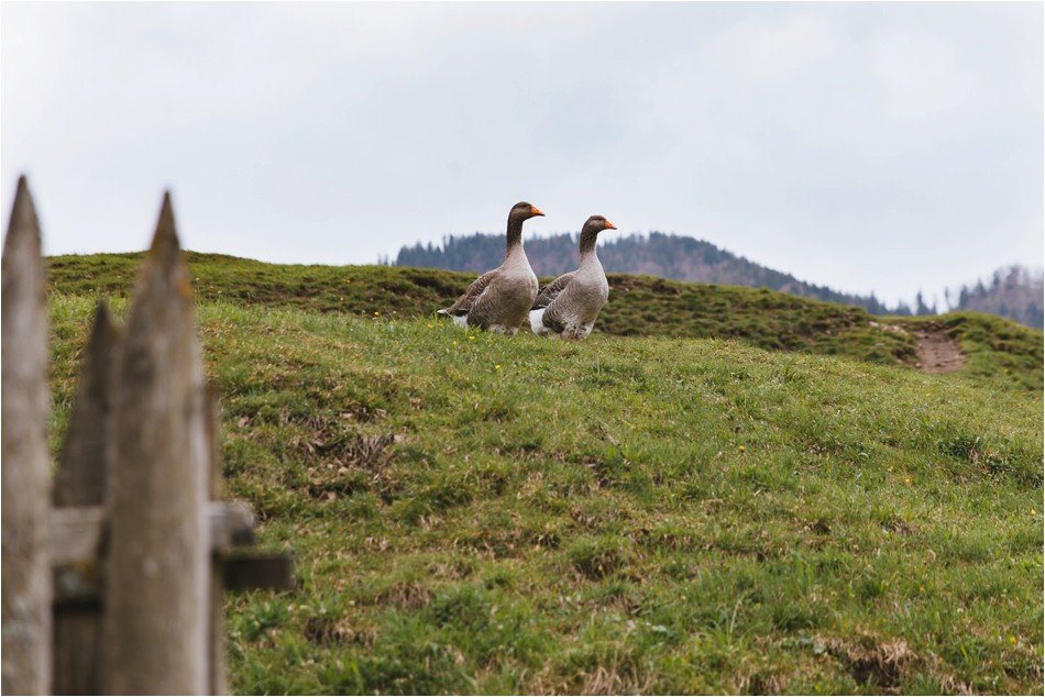 Da stehen sie, Liesl und Hans und begutachten das Geschehen unter ihnen. Wir befinden uns am wunderschönen Wasmeier Freilichtmuseum, bei dem gerade die Hochzeit mit freier Trauung von Isabella & Thomas stattfindet. Liesl und Hans sind die Haus und Hof Graugänse und haben schon viele viele viele Hochzeiten gesehen. Weit oben auf den Hügeln lässt sich das Geschehen am besten begutachten. Sie sehen das Brautpaar, dass sich glücklich anstrahlt und sich soeben noch in ihrer freien Trauung das JA Wort gegeben hat. Die Hochzeitsgesellschaft, die lachend und ebenso strahlend hinter dem Brautpaar in Richtung Sektempfang läuft. Liesl und Hans haben wirklich alles gut im Blick und sie blieben dem Brautpaar natürlich nicht unentdeckt.